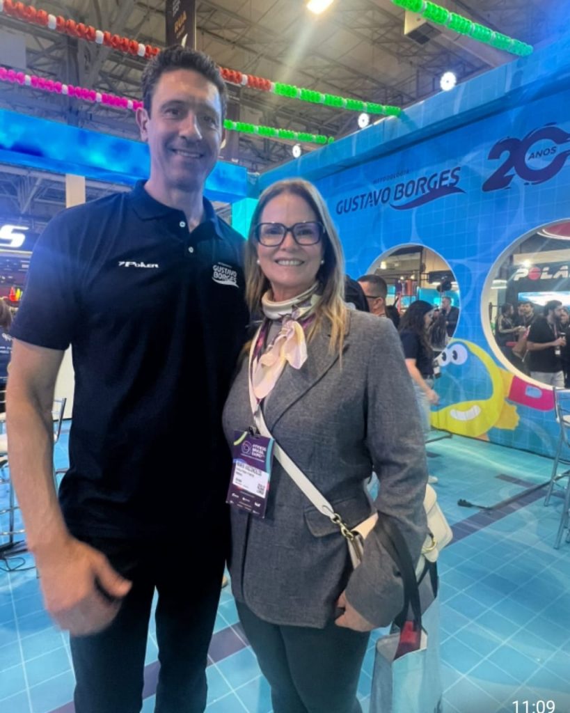 Na Fitness Brasil, maior feira do segmento, em São Paulo, a mestra Mima Adour vivenciou momentos especiais ao lado do campeão olímpico Gustavo Borges, idealizador do método que inspira e fortalece as práticas da natação da Academia Atividade, em Mossoró.