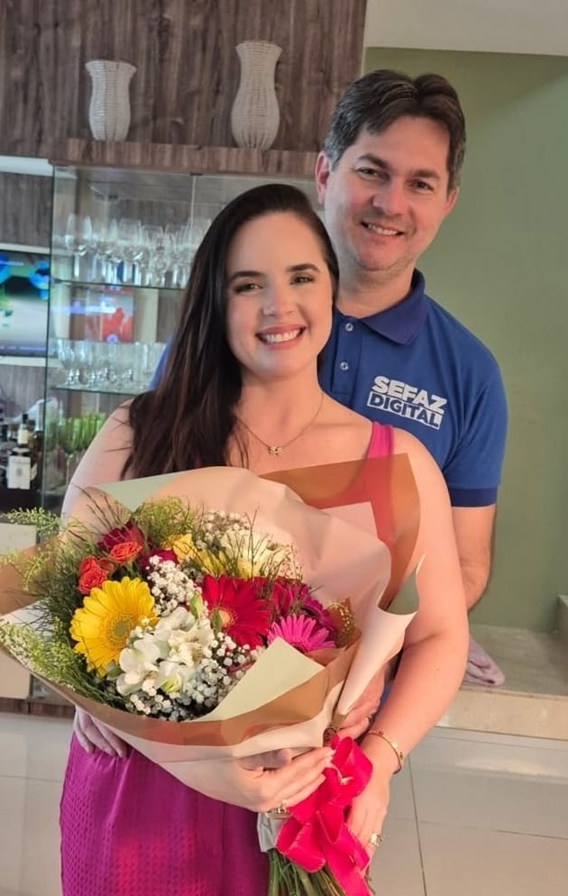 O auditor fiscal Edilson Júnior mima com flores e muito amor sua esposa, advogada Bárbara Paloma Vasconcelos, aniversariante de hoje. Parabéns. Saúde e felicidades!
