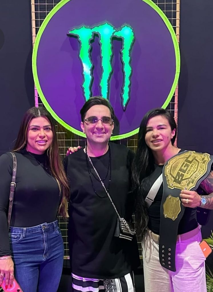 O colunista Georgiano Azevedo com as irmãs Ana Clécia Gadelha e a lutadora Claudinha Gadelha, direto de Las Vegas para o SOFT OPENING do Brasil Grand Champion. Maravilhosos!