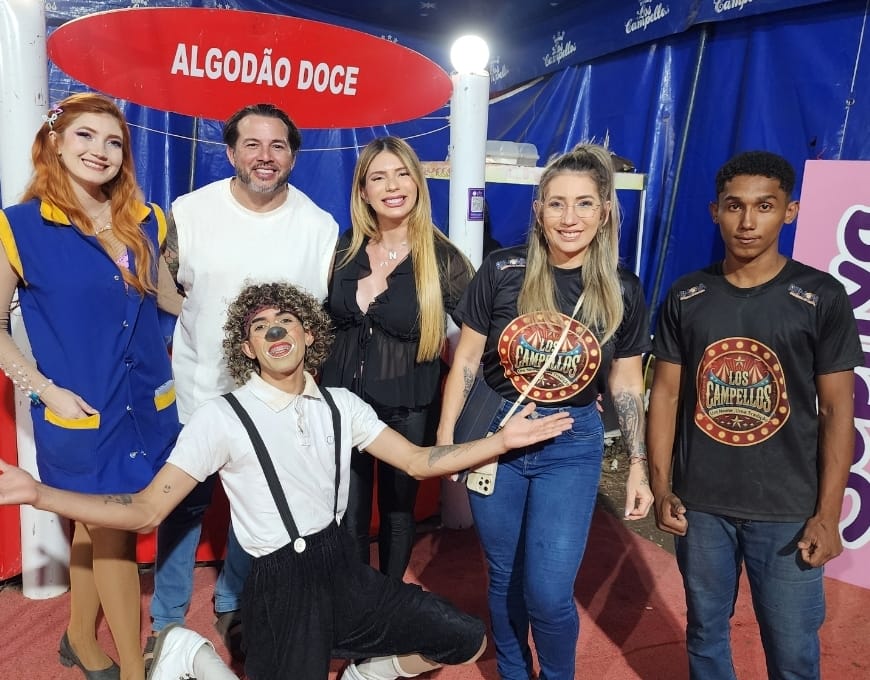 Gratidão ao Circo Los Campellos. Palco do Tráfego Look Kids e Teen. Registro especial de agradecimento à família circense Los Campellos — o casal Artur Fernandes e Nina Campello, ao lado de Pollyanna, Pollyne Campello e palhaço Relampito — pela acolhida carinhosa e pelo espetáculo encantador que emociona o público de todas as idades. Talento, alegria e dedicação que fazem o picadeiro brilhar em Mossoró!