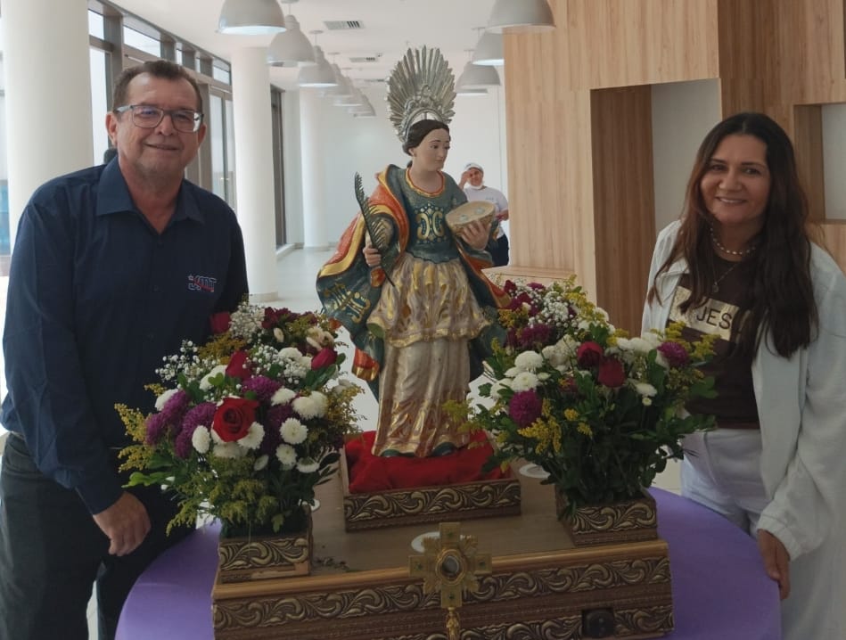 Os queridos Raimundo Fernandes e Eliza Freitas recebendo a imagem Peregrina de Santa Luzia, no Hospital da Mulher Parteira Maria Correia. Vivas!