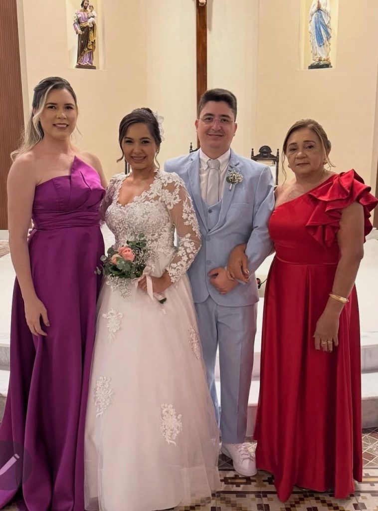 Os queridos Daiany Souza e Edson Douglas disseram “sim” em uma linda cerimônia na Paróquia Nossa Senhora de Lourdes, em Natal. O momento foi cheio de emoção e bênçãos, com a presença especial da vereadora Toinha Soares, tia e madrinha do noivo, e da prima, a advogada Mytchelly Paiva, que fez questão de prestigiar os recém-casados com todo carinho.