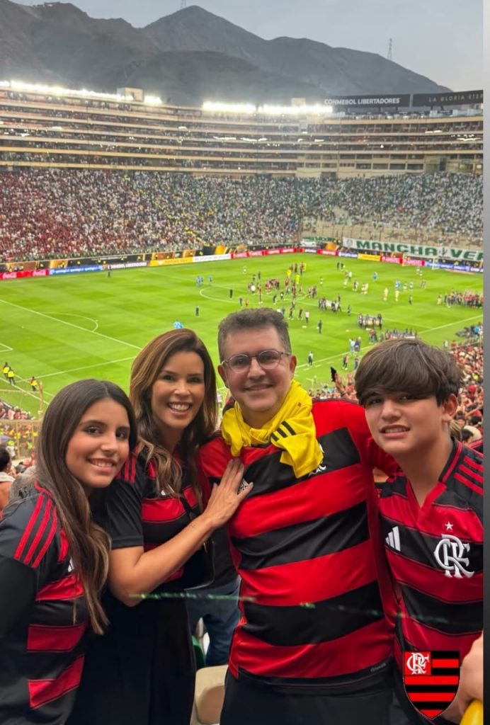 A família Jonas Filho e Roberta Rosado, com os filhos Giovana e Bernardo Neto, conferiu de perto a vitória do Flamengo na Libertadores, direto do Estádio Monumental, em Lima, no Peru. E hoje tem mais — pode sair mais um grito de campeão, em jogaço no Maracanã com o Ceará!