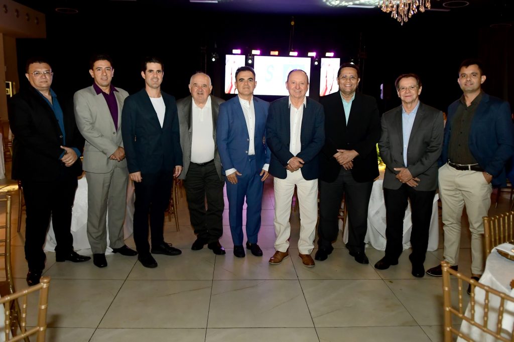 Confraternização natalina do SIESAL, com a Diretoria da Cimsal recepcionada pelo presidente da entidade, Airton Torres. Na foto: Herbert Vieira, Herbert Júnior, Guilherme Vieira, Ney Pinto, Antônio Veras, Roberto de Freitas, Manoel Palhano e Paulo Victor.