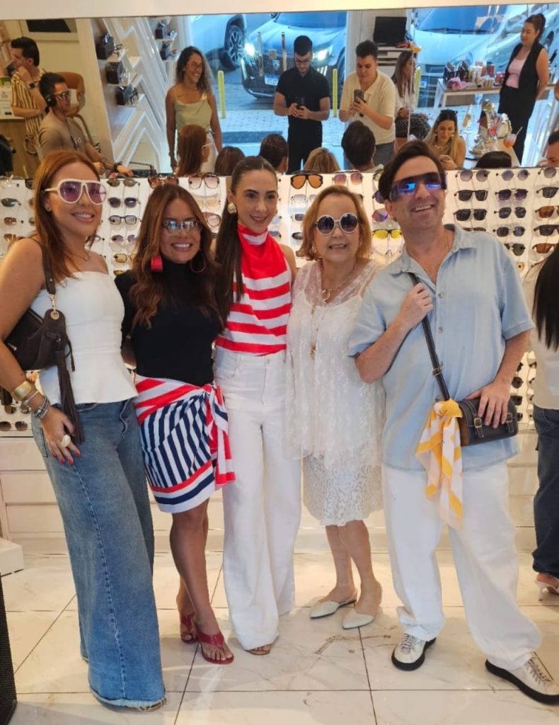 Loucos por óculos, os queridos Georgiano Azevedo, Kadidja Nascimento, Karen Praxedes com a empresária Kênia Marques, e o lançamento da campanha De volta ao sol, da Ótica Lou.