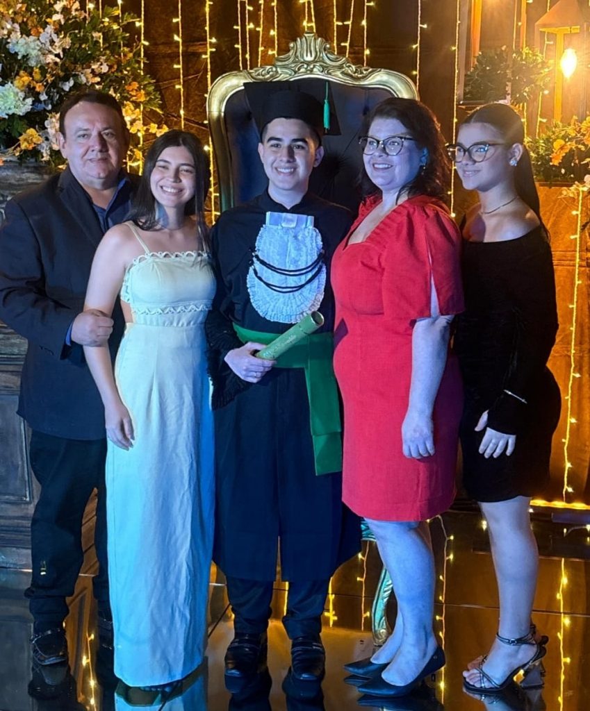 Parabéns ao jovem Bernardo Augusto, que colou grau com méritos no curso de Fisioterapia. Euzinha, que o vi nascer, somei minha emoção e orgulho aos dos seus pais, Carlos e Vivi, da namorada Esther Vitória e da irmã Bianca. Uma conquista linda, construída com dedicação e amor. Sucessos, Bernardo!