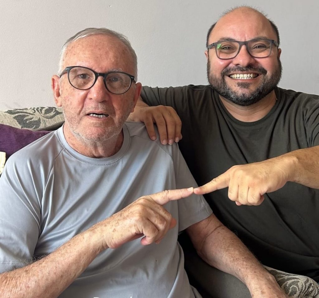 O colunista e empresário do segmento fashion, George Azevedo, em visita ao querido colunista Paulo Pinto. É isso… amizade se confirma na presença. No afeto. No ‘eu estou aqui’. E vamos de juramento do dedinho.