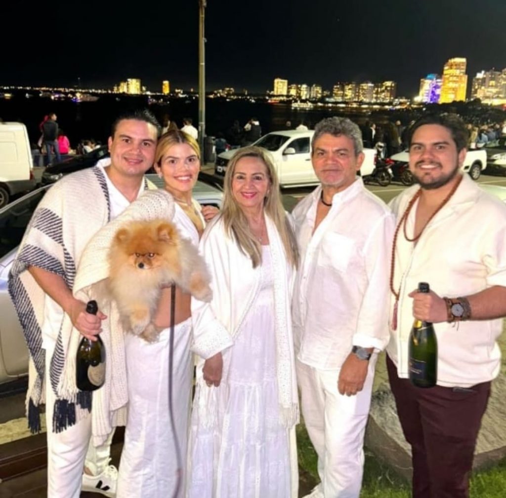 O casal Rogério e Lucinha com os filhos aniversariantes de hoje Rodolfo e Rafael Maia com a sua bela Lara Rosado, no Réveillon em Punta del Este. Os irmãos nasceram na mesma data, porém em anos diferentes. Parabéns, meus amores!