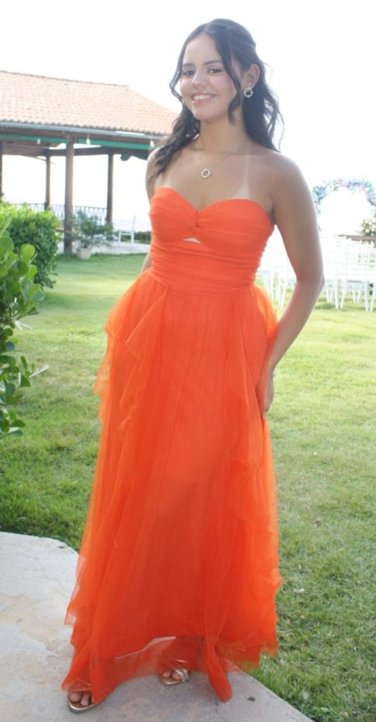 A belíssima Marina Luiza irradiando luz e charme, no look assinado por Marluce Elegance para o casamento de Bianca Paiva e Eduardo Chaves.