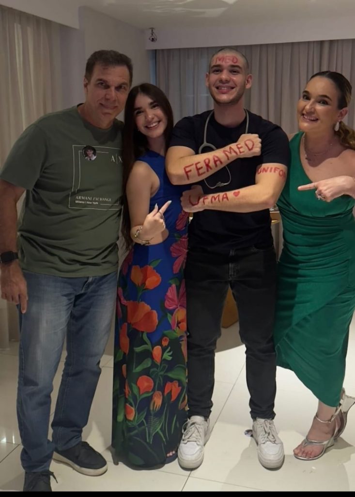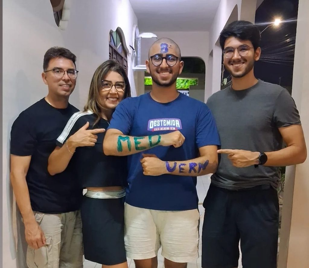 Aos pais de João Gabriel, Paulo Davi e Ana Cláudia Caldas e de Eduardo, Daniela Rosado e Marcelo Duarte, primeiros colocados de Medicina na UERN e UFERSA, respectivamente, nossos parabéns. Herleila Lopes e Gildivan Carneiro com a aprovação de Ravi, na UFMA. Sabemos que os pais são parte essencial nessa conquista.