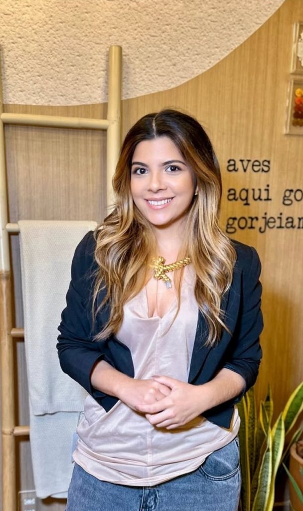 Andréa Menezes anunciando a promoção “Alugue e Leve” do Casarão das Noivas.