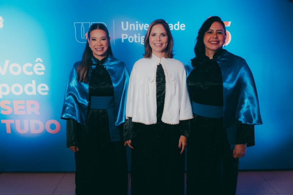 A Universidade Potiguar escreve um novo capítulo em seus 45 anos: posse da primeira reitoria 100% feminina. Assumem a reitora Bárbara Azevedo, a pró-reitora acadêmica Jusselle Santiago e a pró-reitora administrativa Tâmara Souza, marcando um novo ciclo de gestão, inovação e protagonismo feminino no RN. A cerimônia ocorreu no Holiday Inn Natal. Parabéns, queridas!