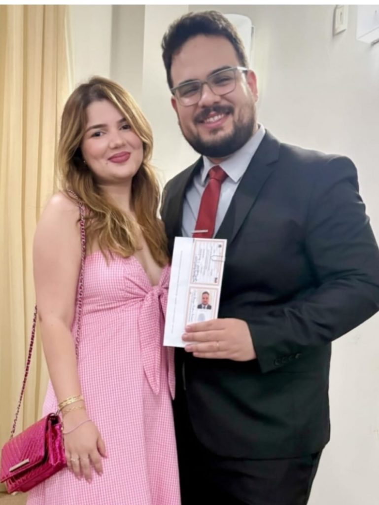 Agora oficialmente Advogado. Parabéns ao sobrinho André Henrique Martins com a sua honrosa aprovação no exame da OAB. No clique, com a esposa Maressa.