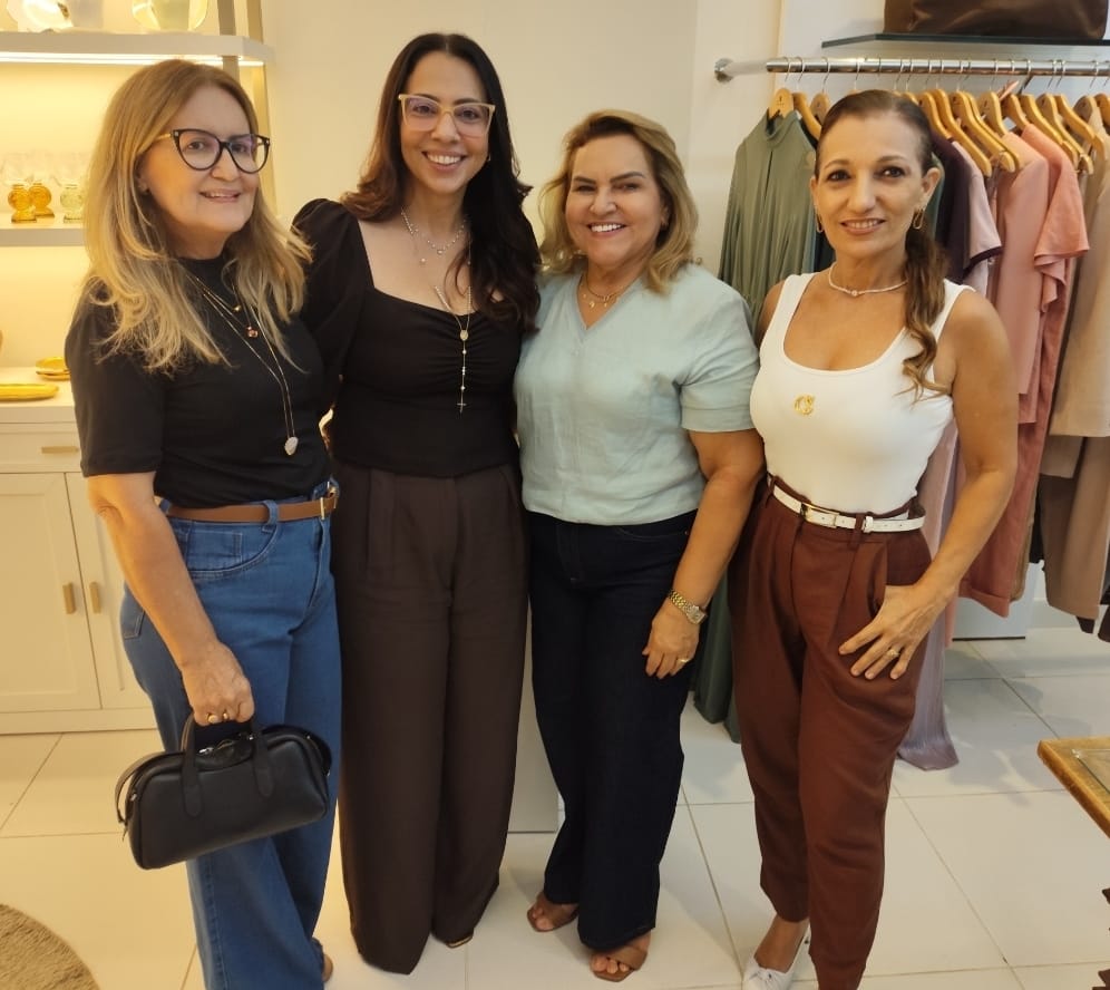 Tardezinha na alinhada Tressê com a empresária Sandra Rolim recebendo Janete Queiroz, Danusia Freitas e Tatiana Cantídio para o FALL WINTER 26.