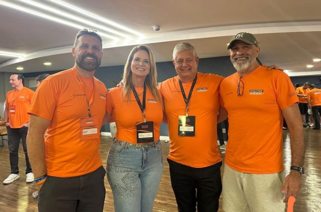 Casal do nosso benquerer, Flávio Vasconcelos e Mima Adour, no workshop da Evolution em Balneário de Camboriú com os executivos Evolution Ricardo e Adilson Floriano. A vida é bela!